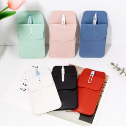 Made of PU leather, this pocket protector protects shirts from damage and leaky pens. Paper ID and pen not included.Holds pencils, pens, markers and more. This pocket pen holder is perfect for offices, schools, hospitals, stores or stores, business meetings, forums or conferences.